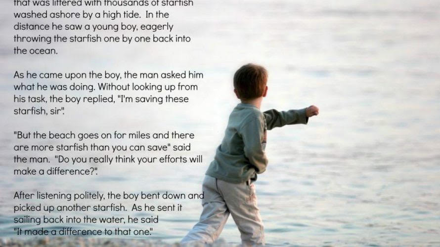 その少年は、ヒトデをひとつひとつ手で拾い、海へ向かって投げ続けていた。